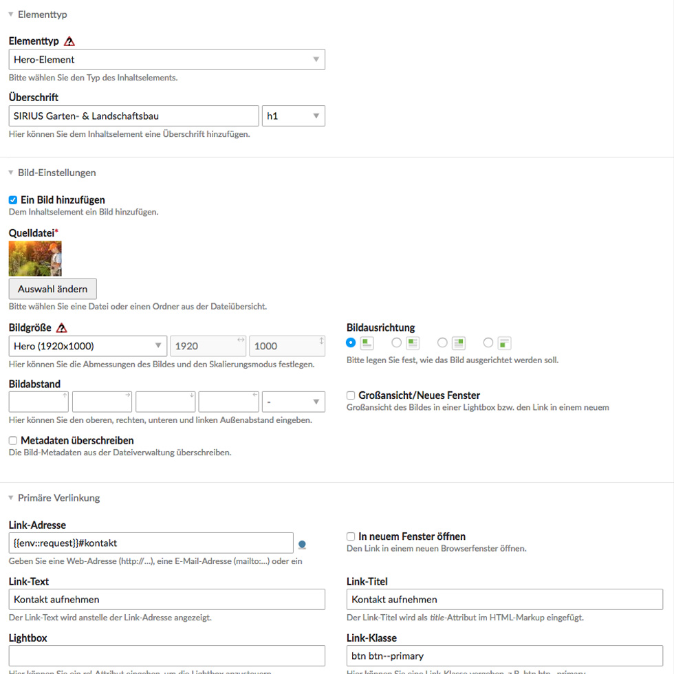 In SIRIUS ist ein zusätzliches Hero-Element enthalten, das das Anlegen eines Heros-Bereichs noch einfacher macht.